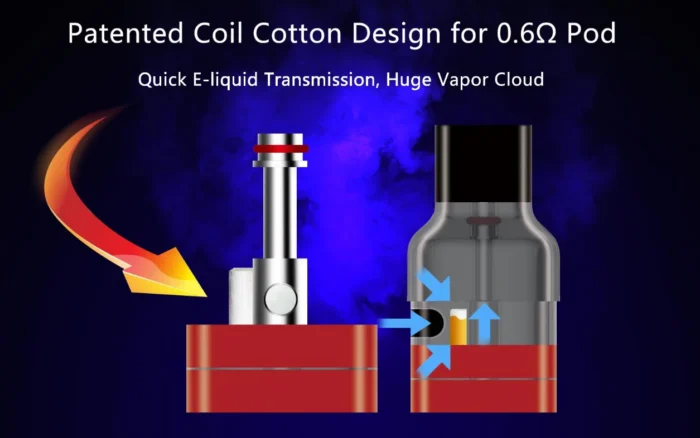 3. Unique coil cotton design for the 0.6ohm pod for rapid e-liquid flow