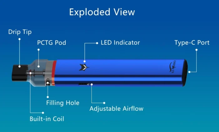 • Pod resistance: Meshed 0.6ohm(14-18W), Dual Coil 1.0ohm(11-13W)